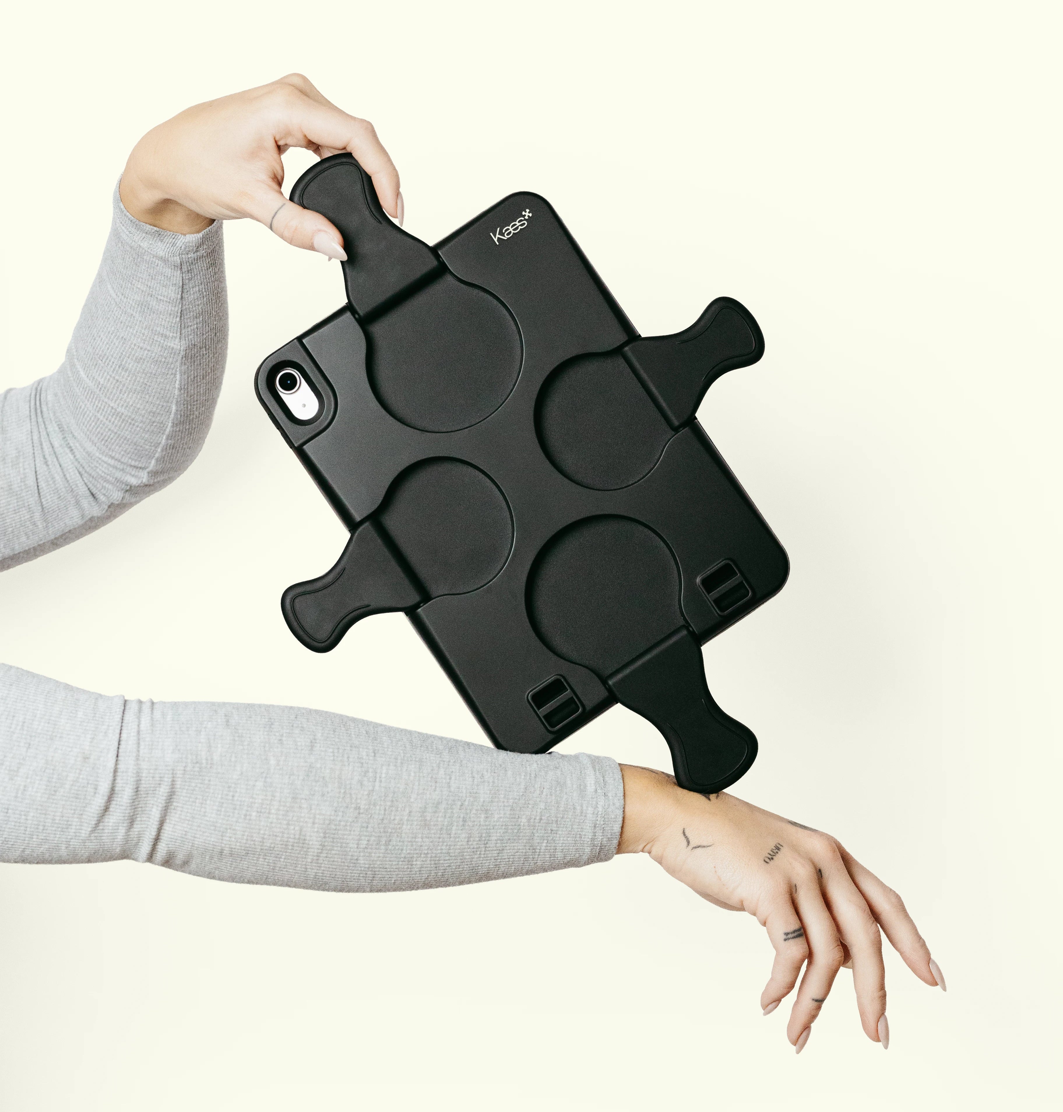 An ergonomic, ultra-versatile iPad case with V.A.S.T. angle control and a hanging system for true hands-free use.